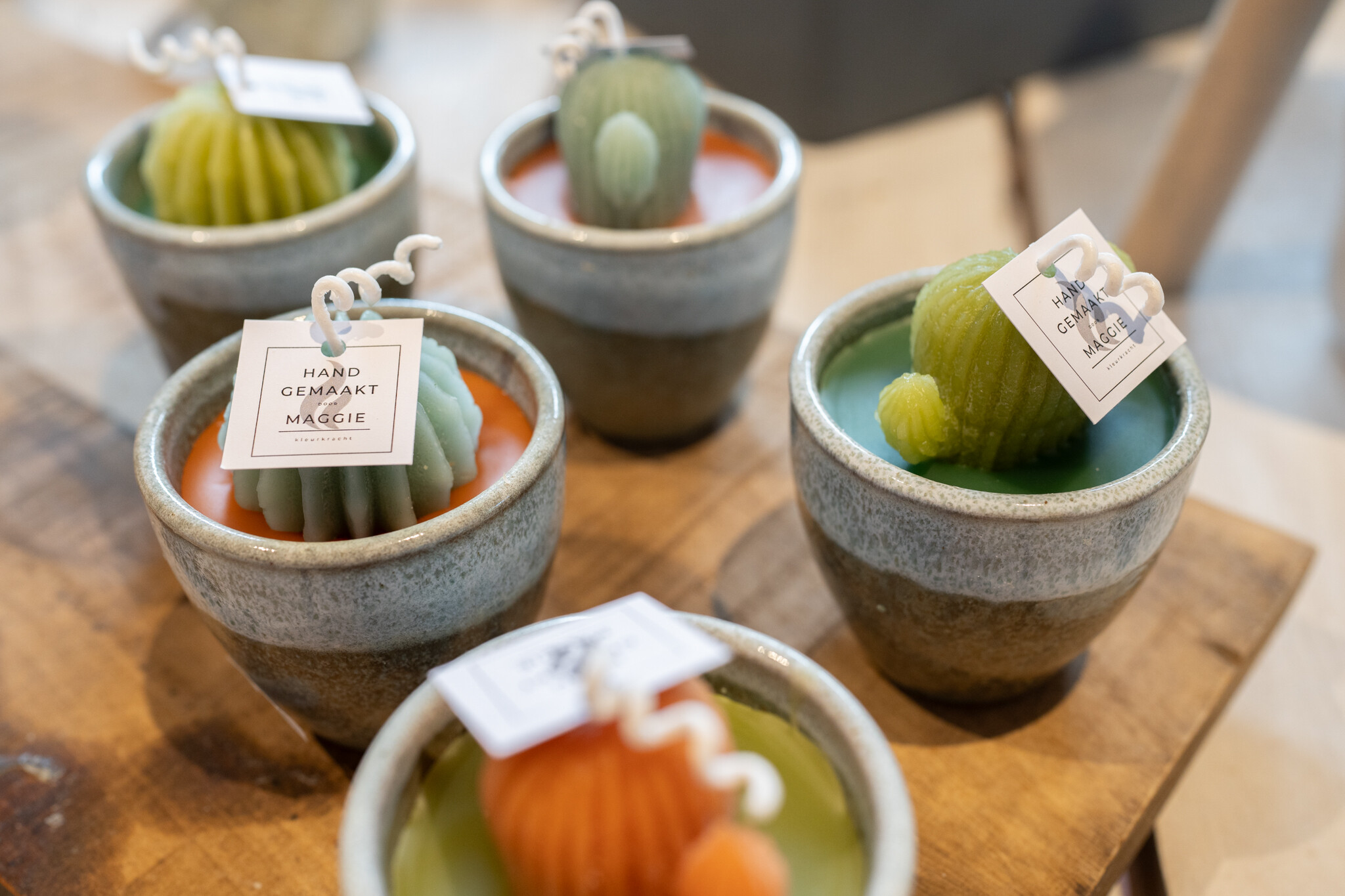 Ook de inhoud stemmen we af: dinerkaarsen in jouw merk­kleuren (dipdye of gemarmerd), een theeselectie passend bij het seizoen, of zeep met een label “Bedankt” / “Welkom” met jouw logo. Resultaat: een gepersonaliseerd zakelijk cadeau dat past bij het moment én bij je merk.